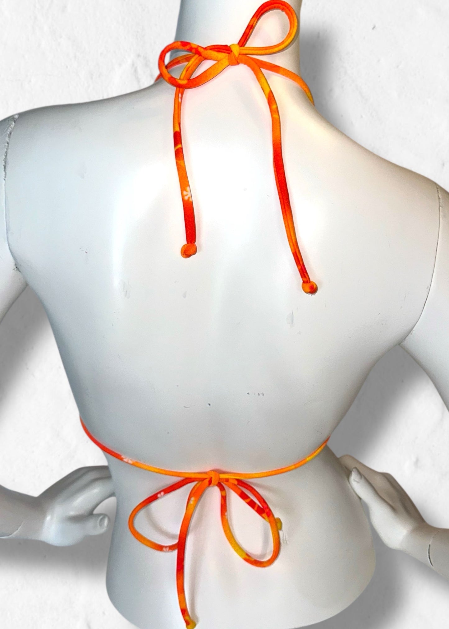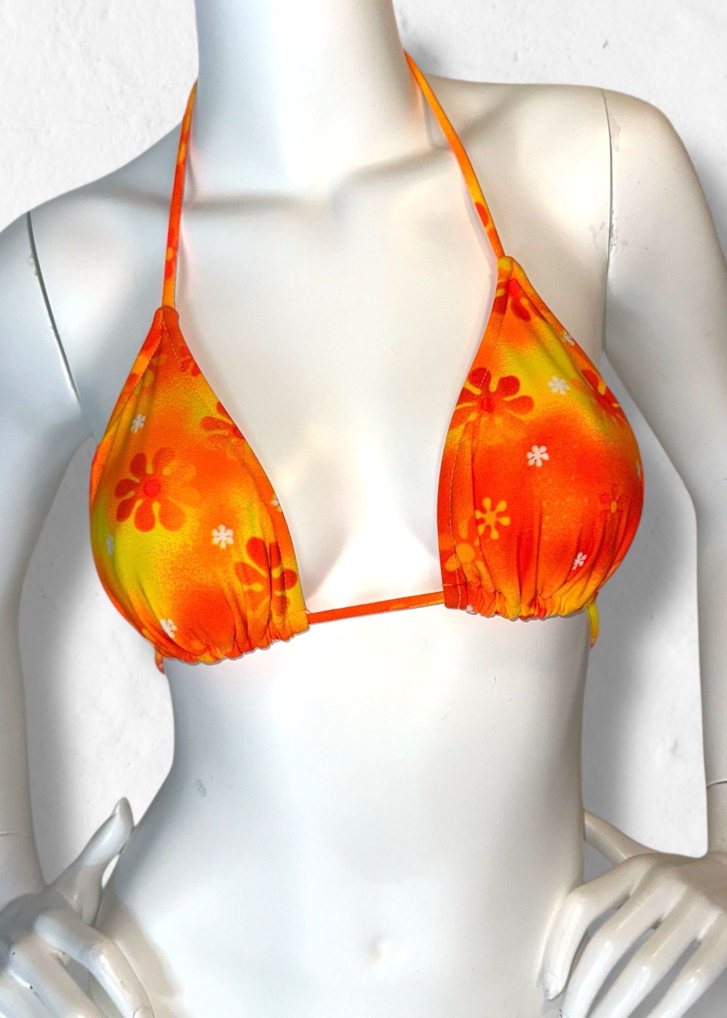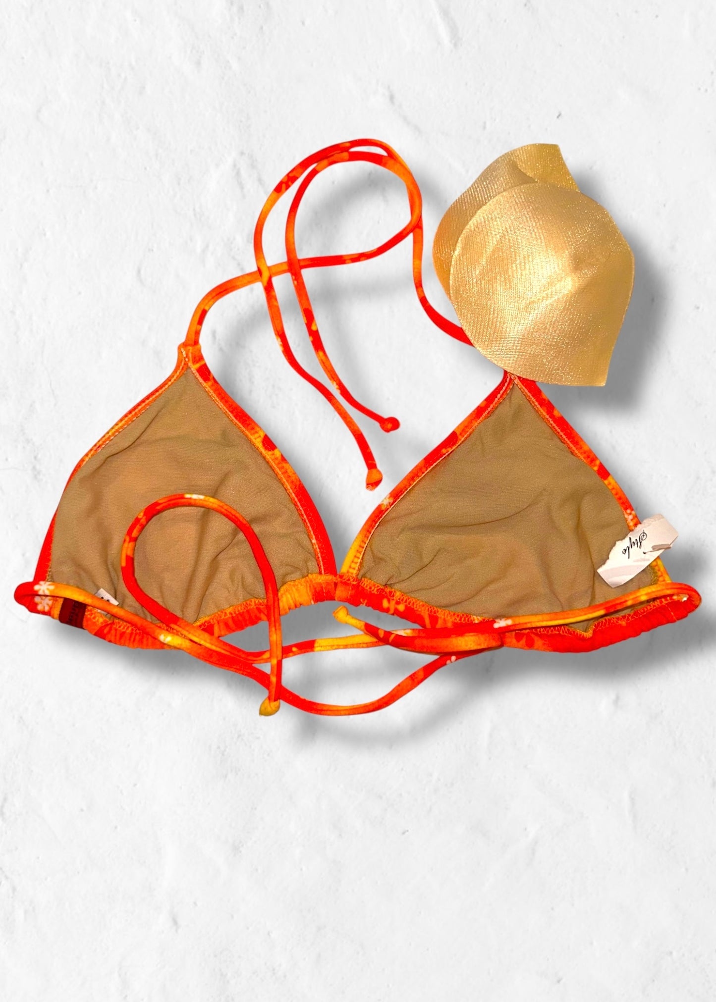 Y2K Orange Tropical Floral Slide Triangle Bikini Top – Deadstock Vintage | Made in USA
