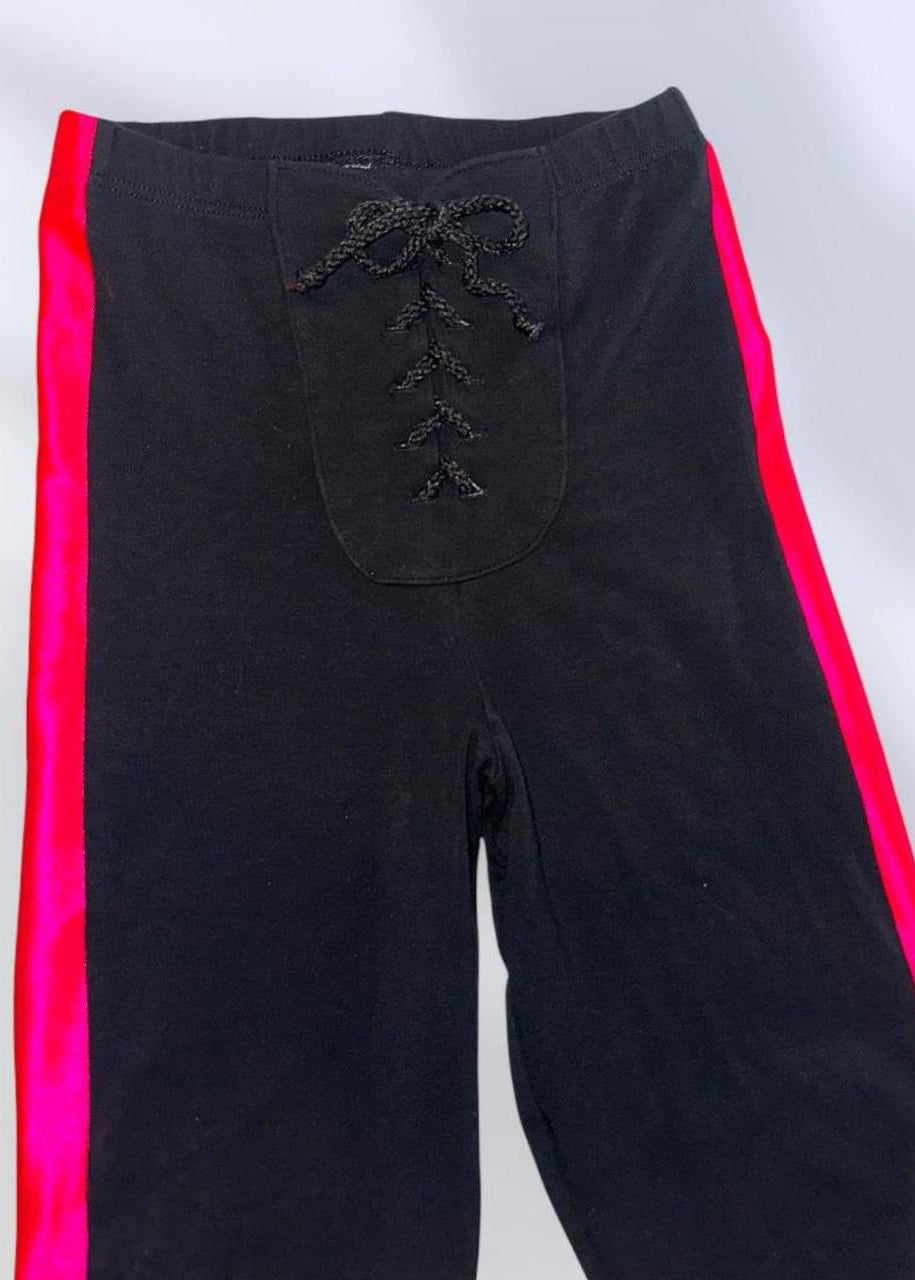 Crafted from a thick, clingy cotton-spandex blend, these leggings sculpt your waist and smooth your curves with a compressive, ultra-flattering fit. The standout features: a bold hot-pink shimmer athletic stripe down each leg and a sexy lace-up front panel, giving that iconic early-2000s sporty vibe.