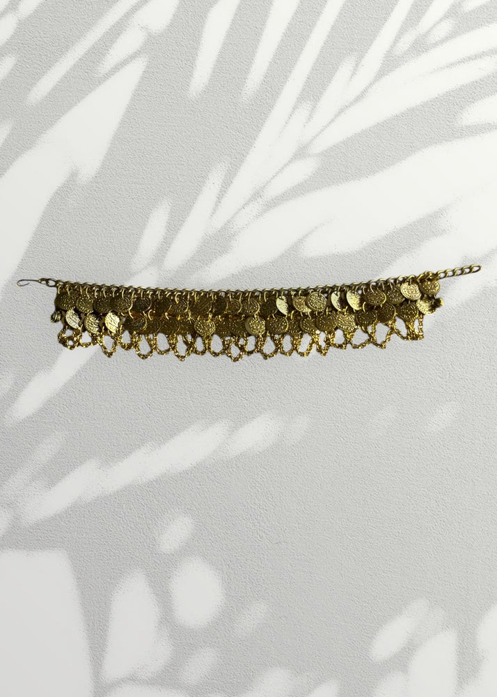 Adorn your steps with the shimmer of another era. This authentic 1970s vintage handmade coin anklet is a statement of rhythm, elegance, and showgirl allure — handcrafted with intricate detail and layered metalwork that dances with every move.