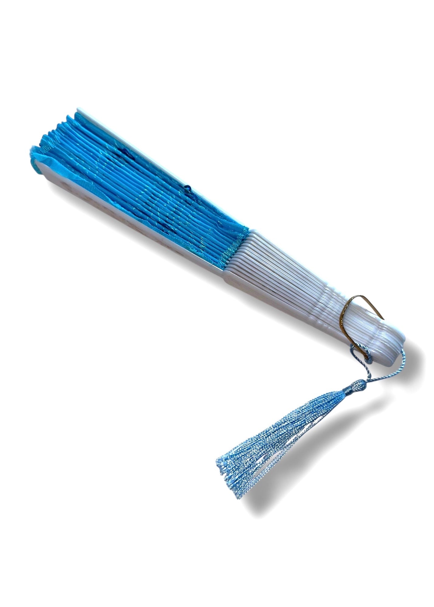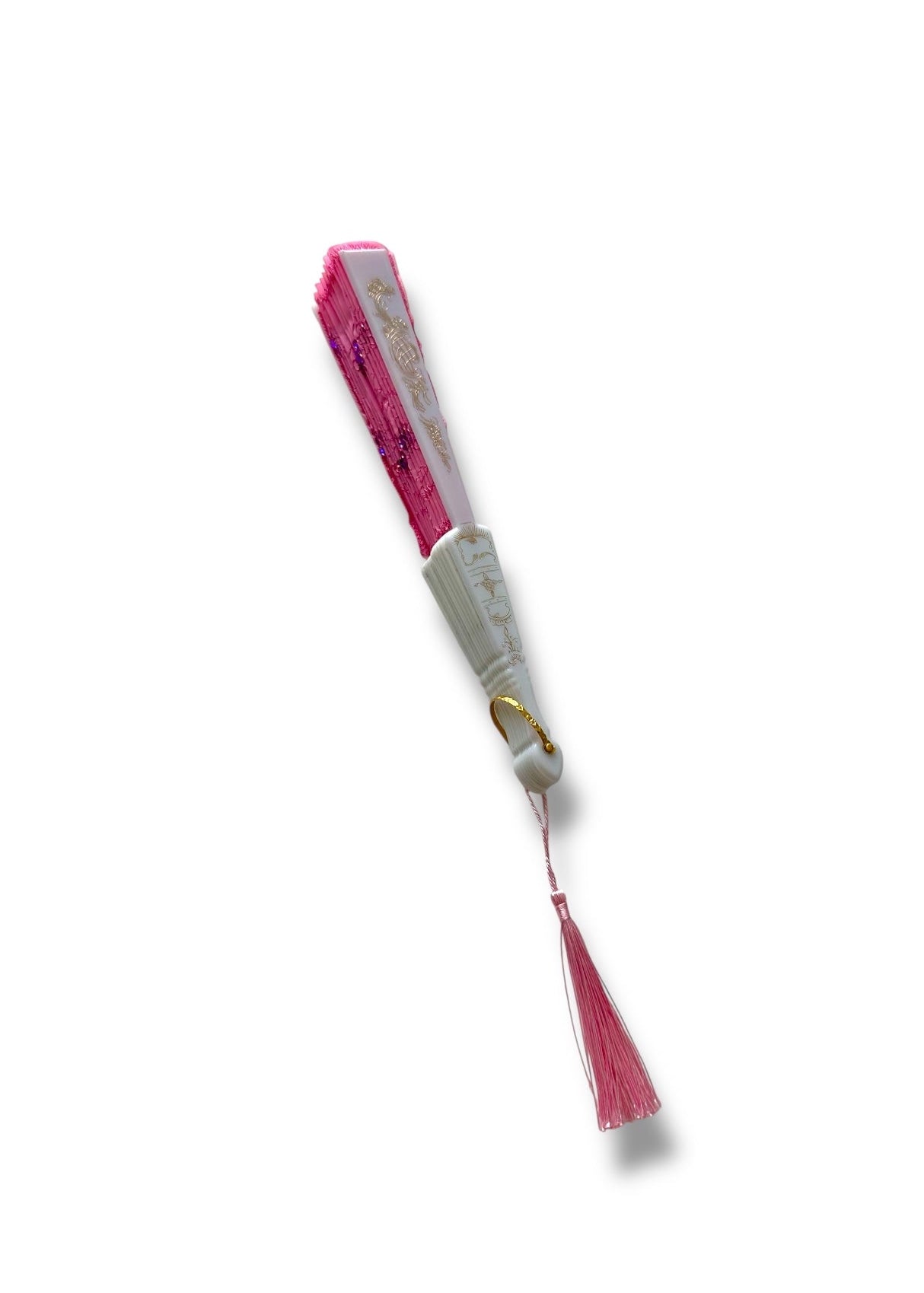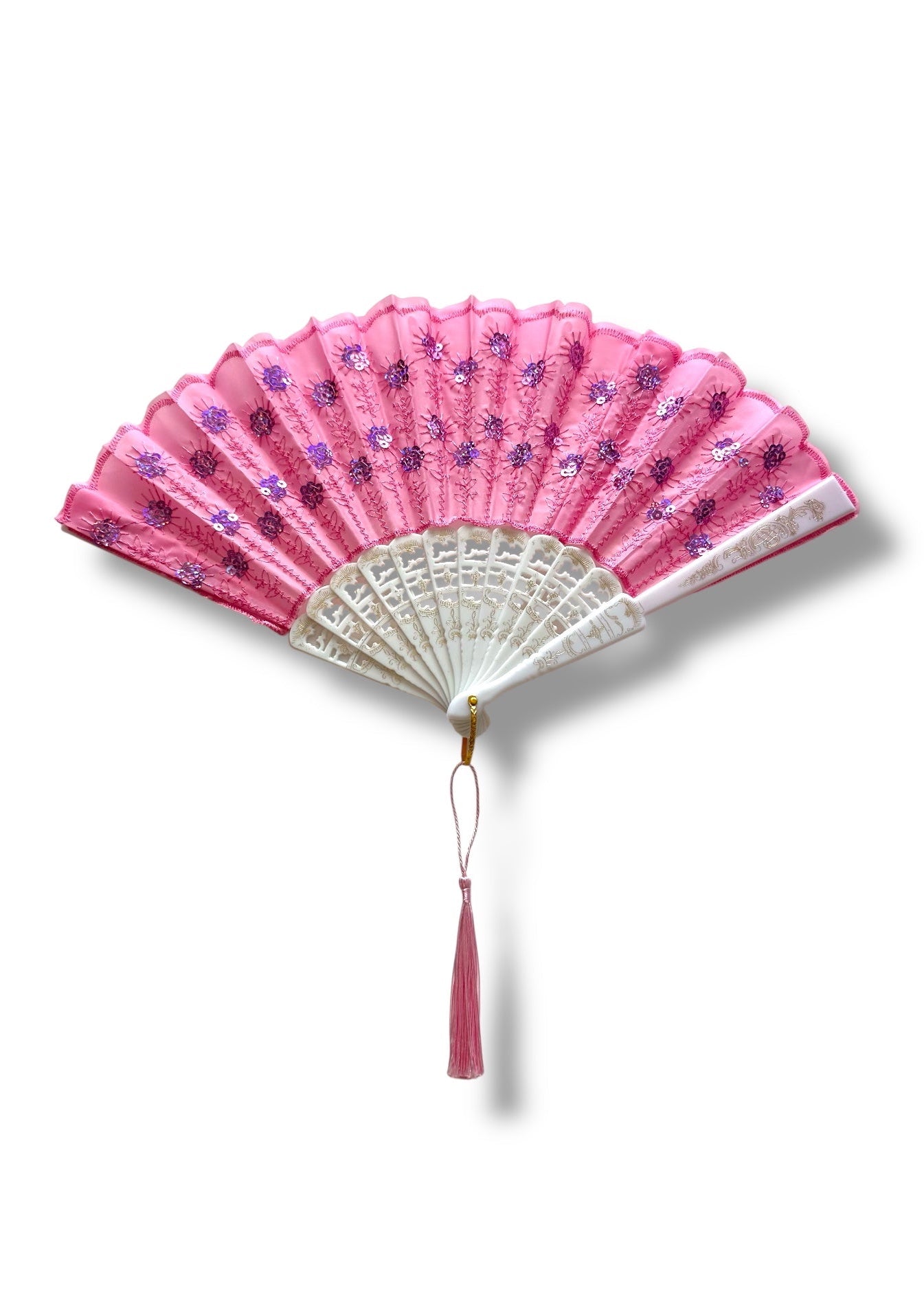🌸 Pastel Pink: Light pink fan with floral sequin embellishments & fringe tassel at closure.