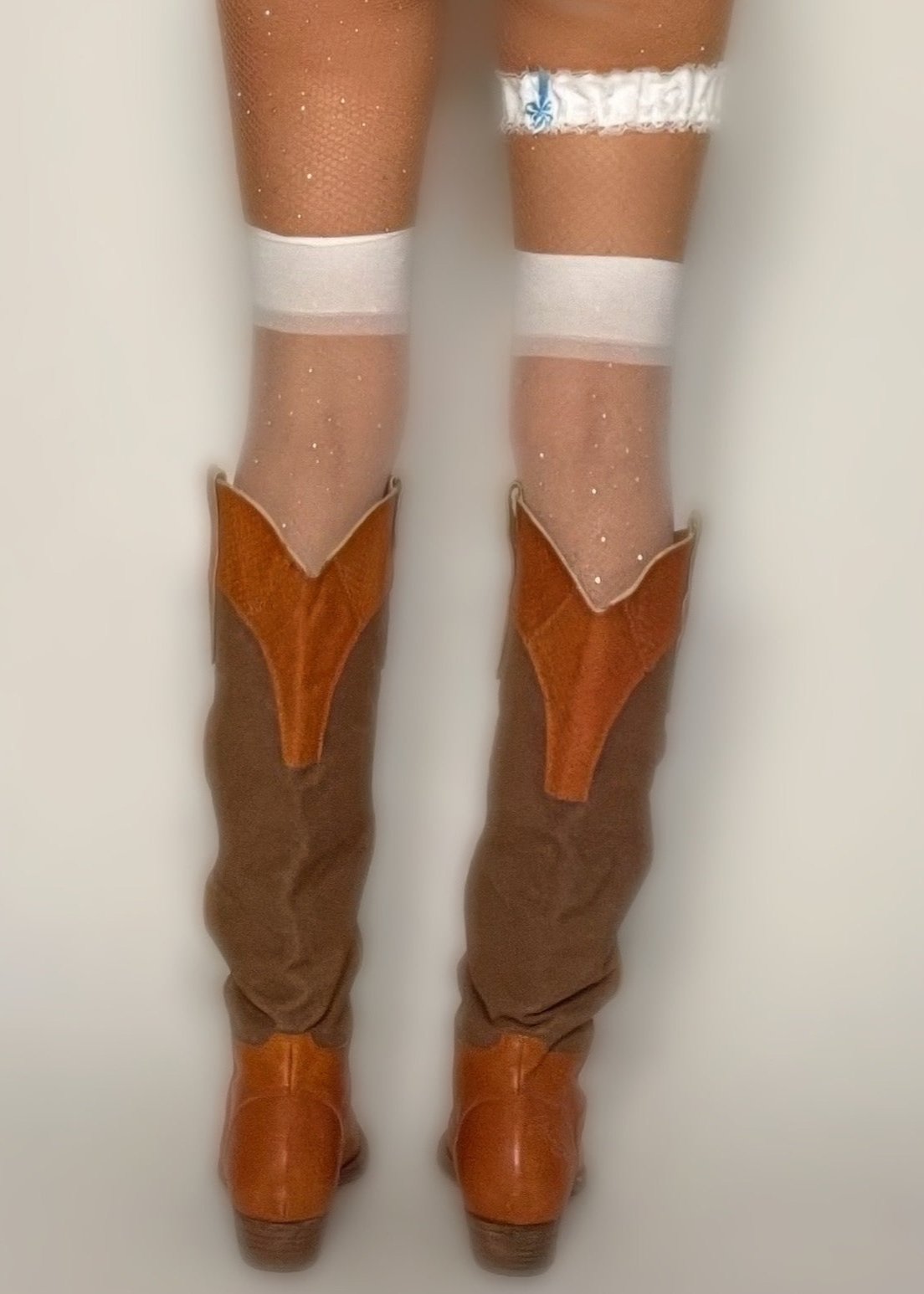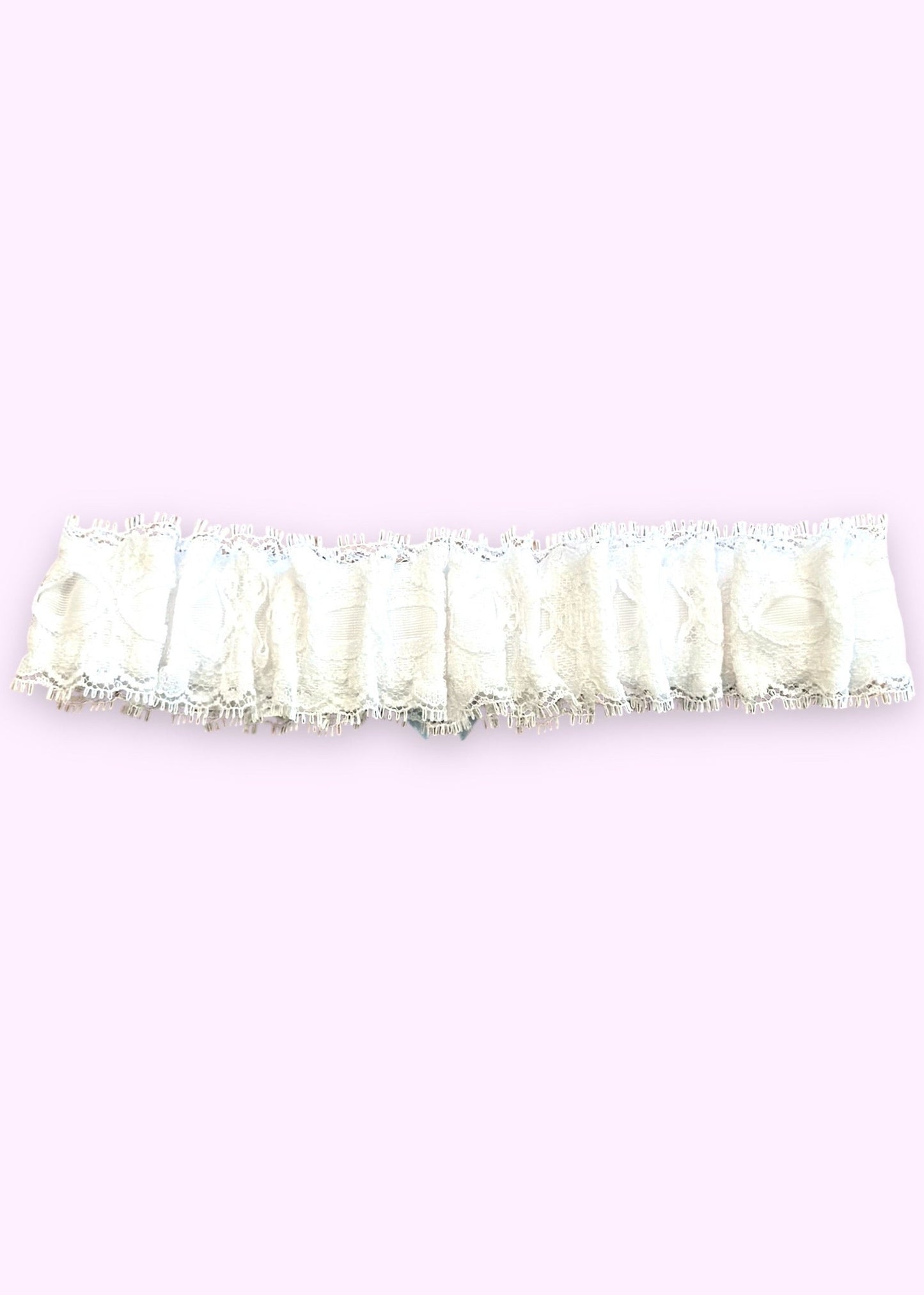 Vintage Lacey White Thigh-Garter Band with Pastel Blue Ribbon | 90s Coquette Style