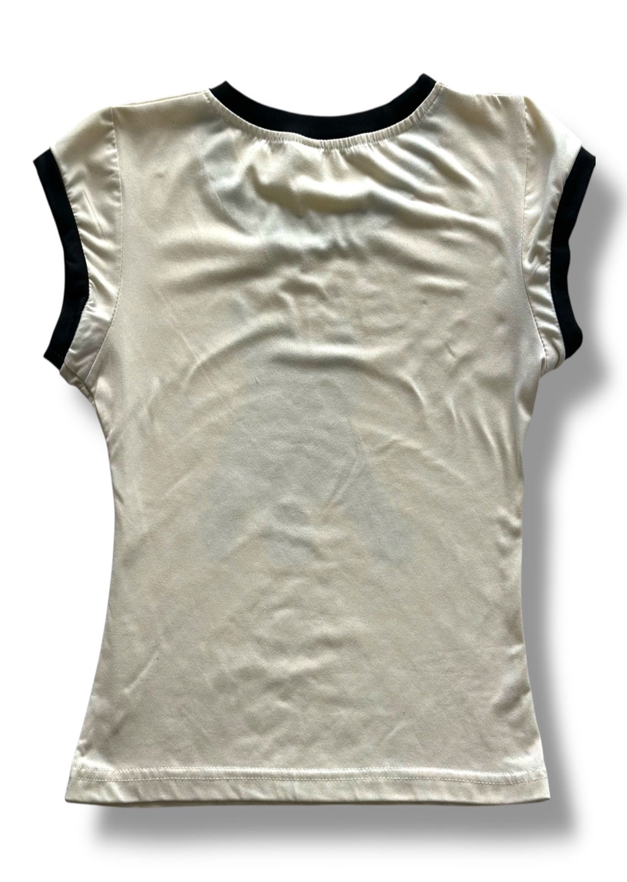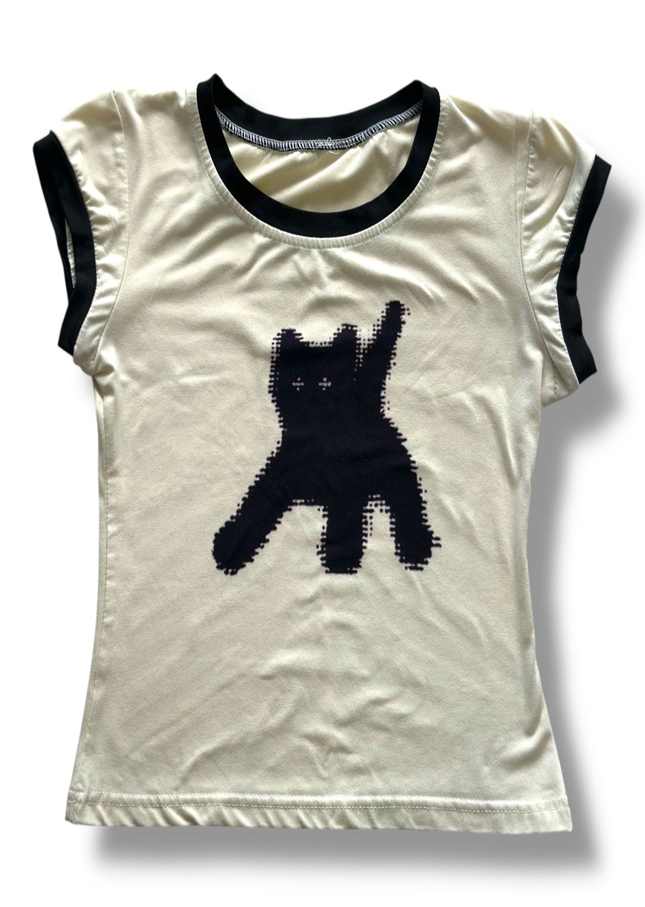 Y2K Kitty Baby Tee – Semi-Sheer Ringer Crop Top USA Vintage
