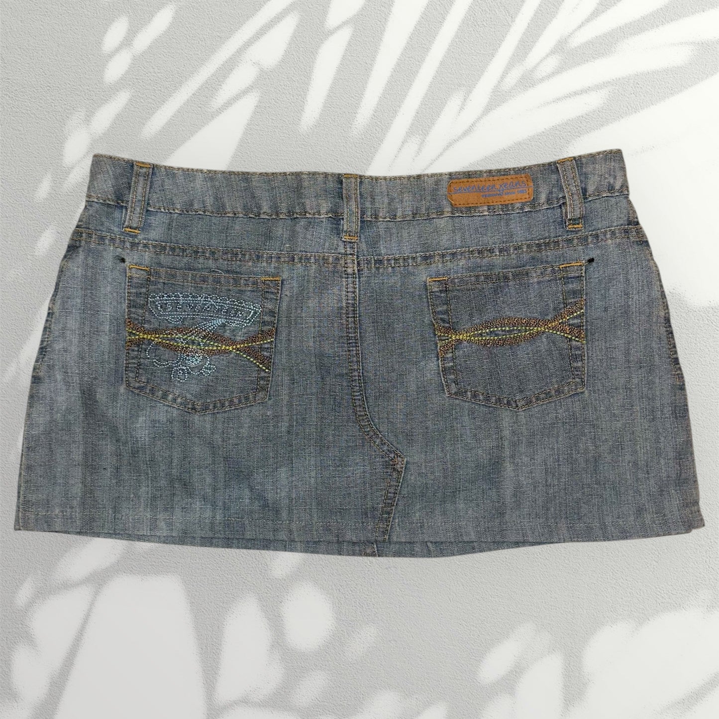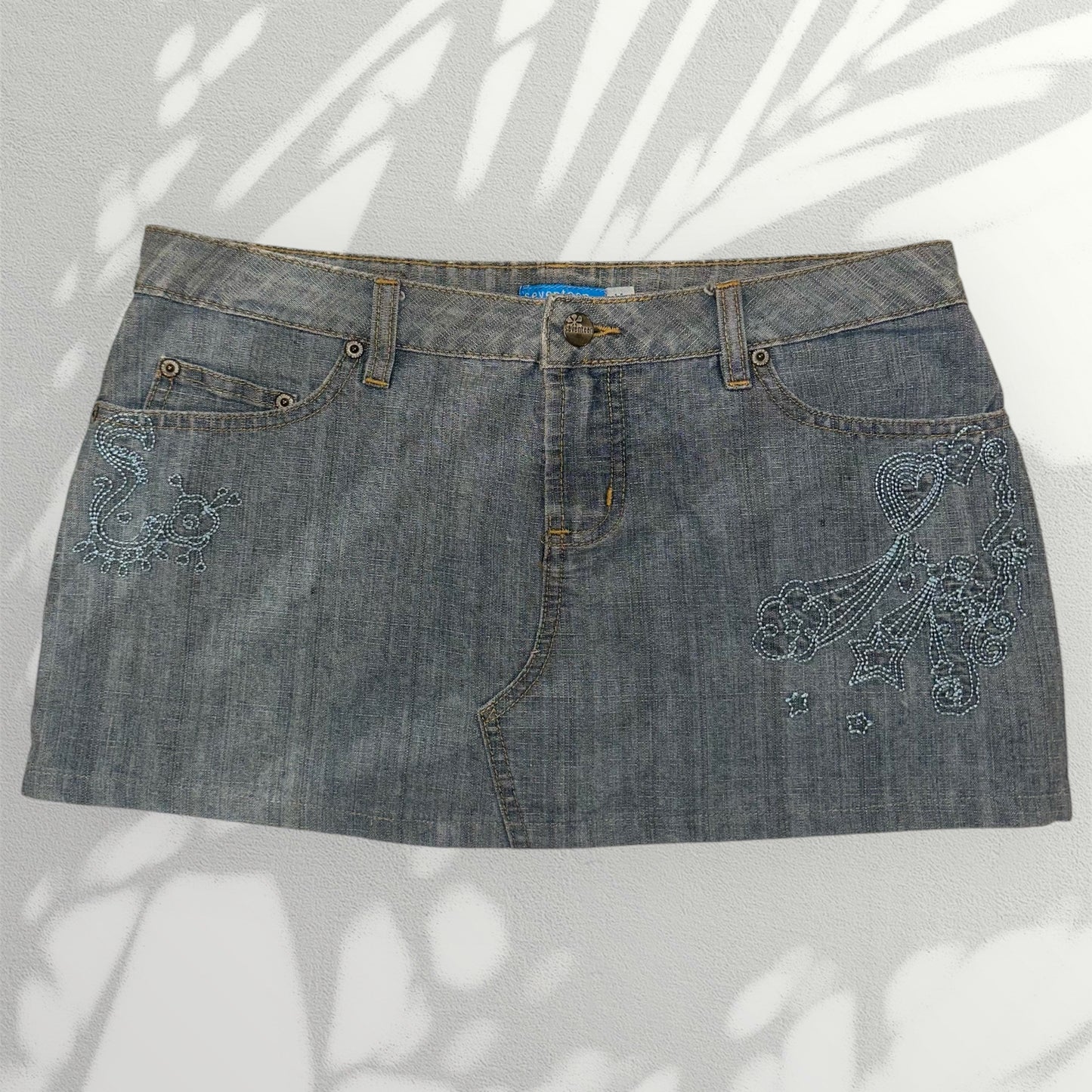 Rare Y2K Low-Rise Denim Mini Skirt – Embroidered Deadstock Vintage