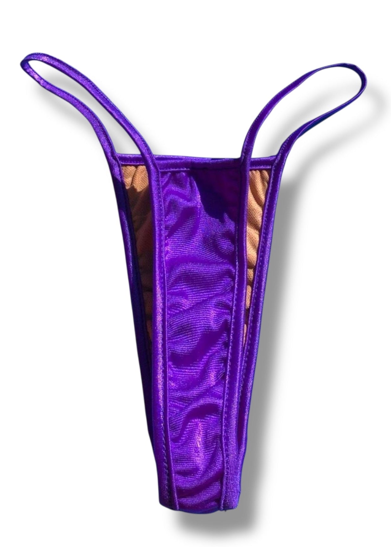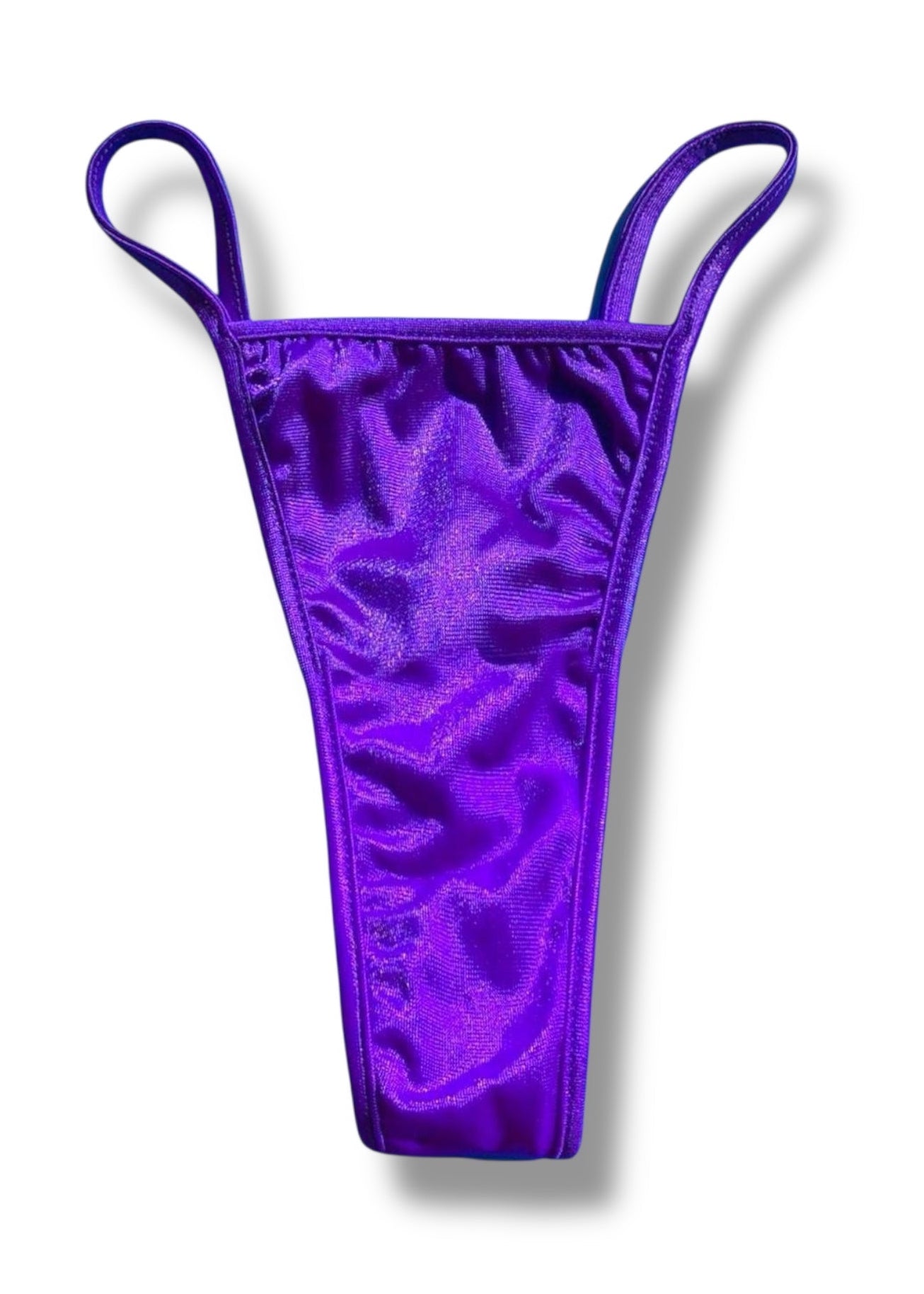 Crafted in the USA from rare shimmering nylon/spandex, these minimalist Brazilian-cut bottoms offer the perfect amount of stretch, sculpt, and curve-hugging magic. Pull the thin straps up above the hips for a dramatic, waist-cinching 80s/90s high-leg moment — or wear them lower on the hips for a true early-2000s supermodel vibe.