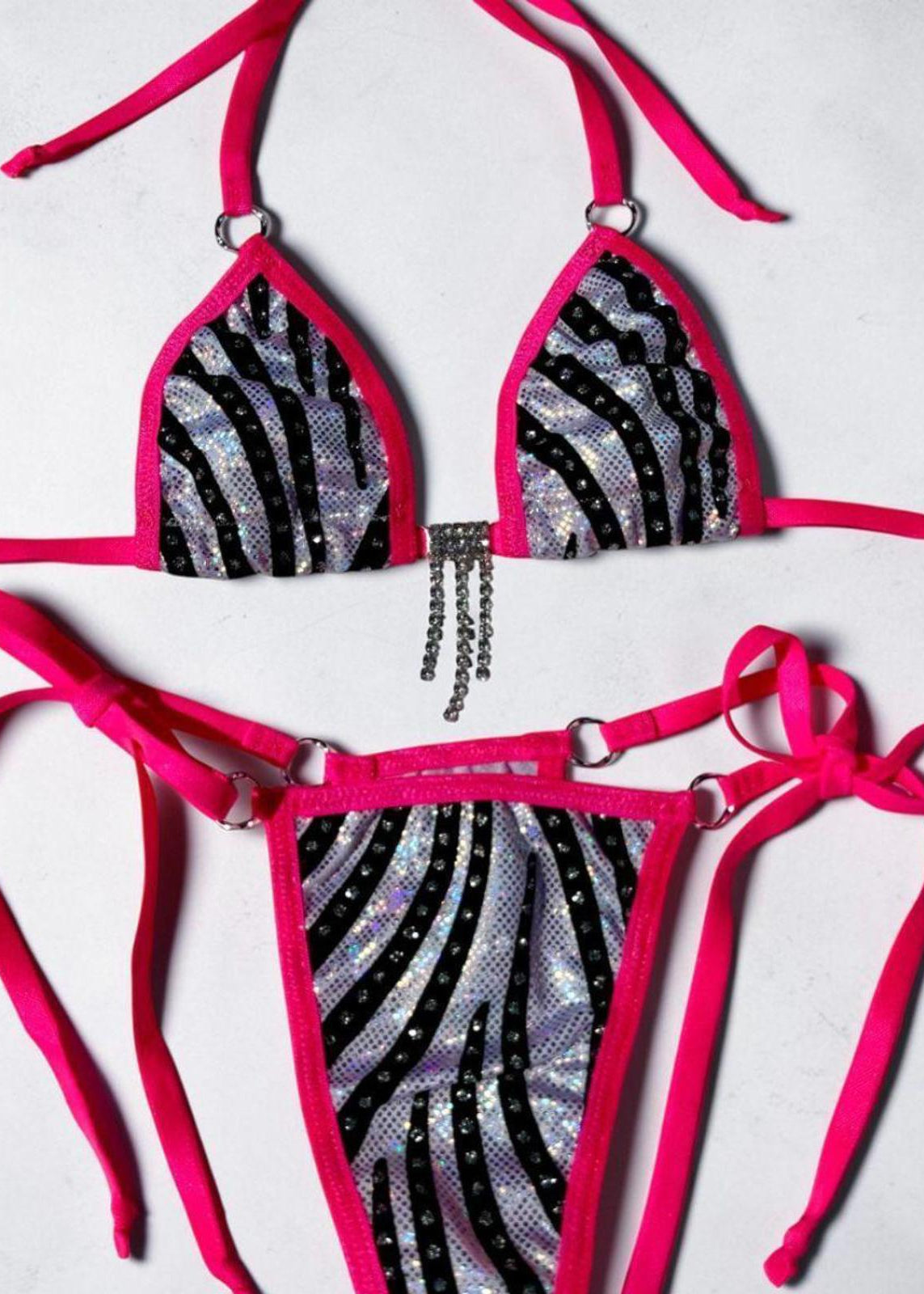 Each bikini is handmade and fully adjustable, designed to sculpt the body with minimal coverage while maximizing sparkle.