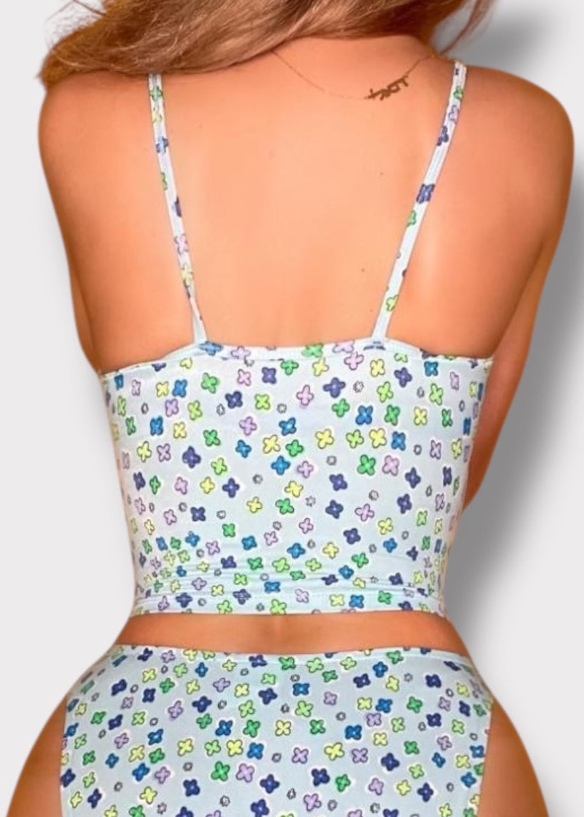 90s Ditsy Floral Milkmaid Tankini Camisole Top – Pastel Blue Vintage Swim