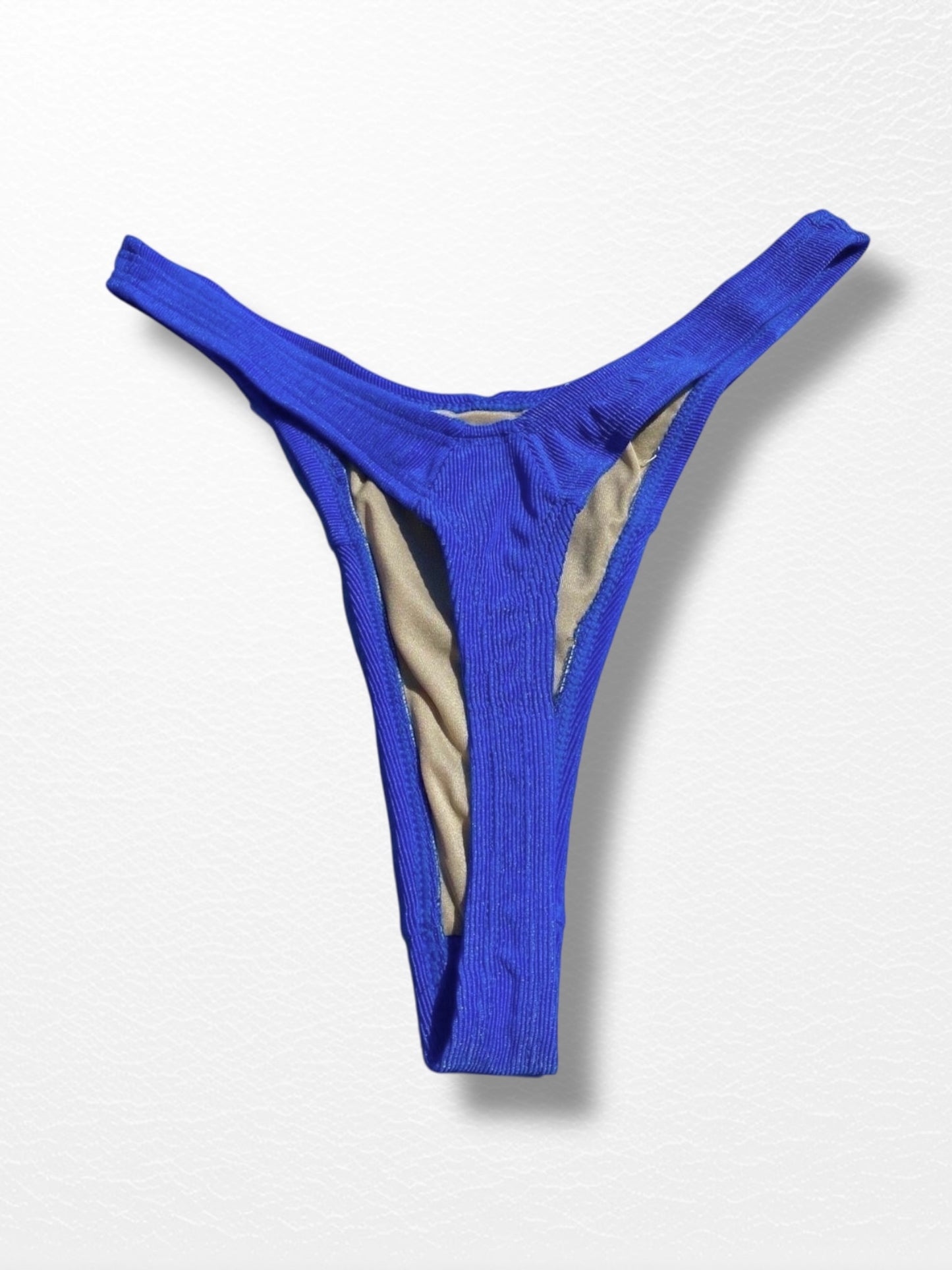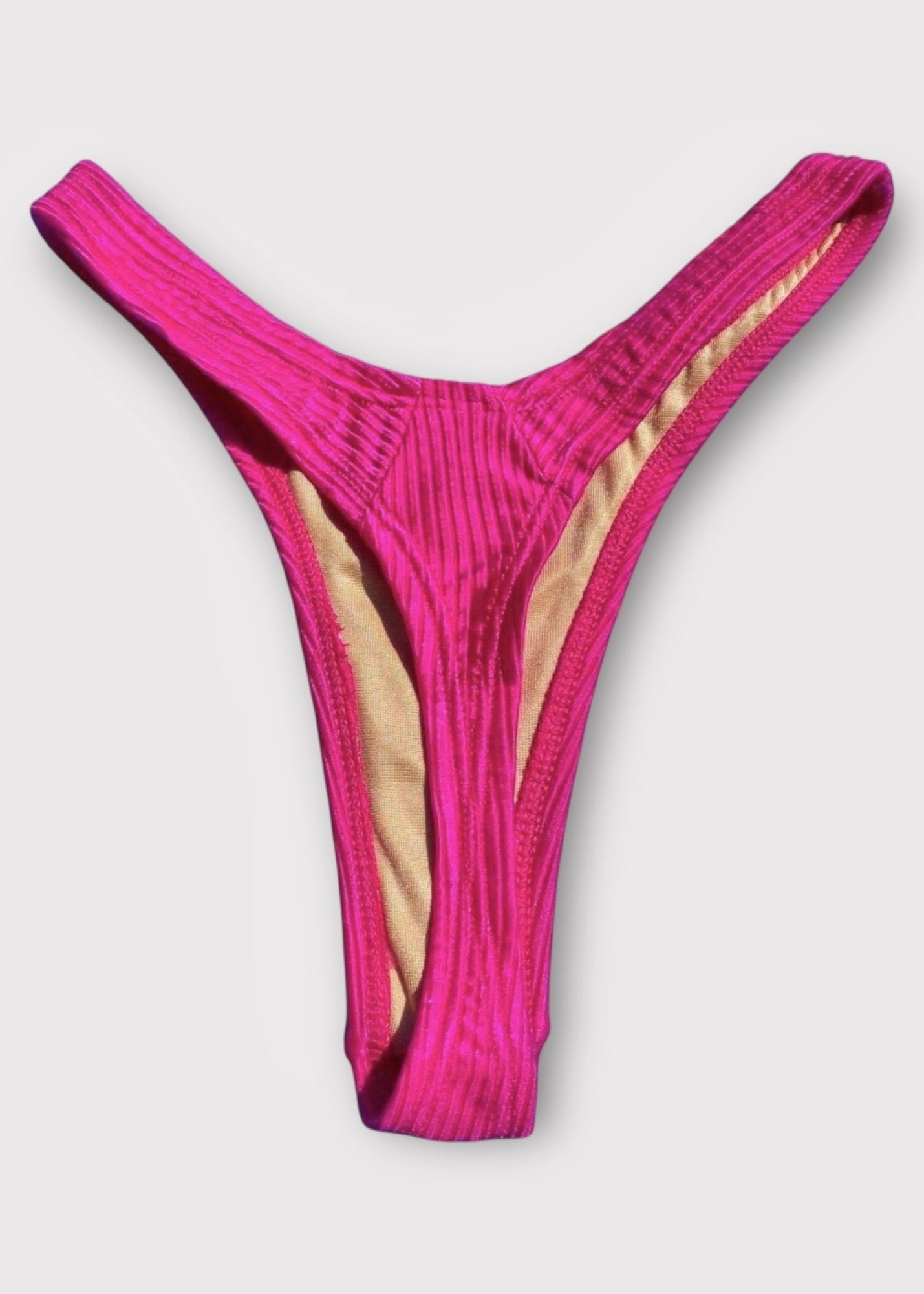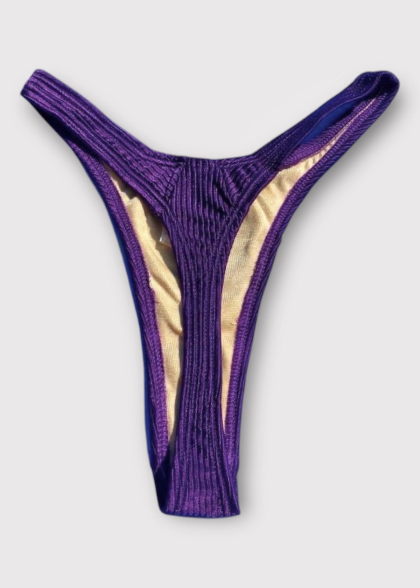 Serve legs for days in this ultra-rare, authentic 1990s ribbed shimmer thong bikini bottom — a Y2K dream made real.