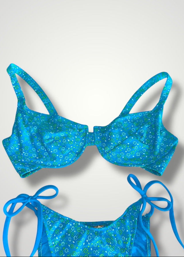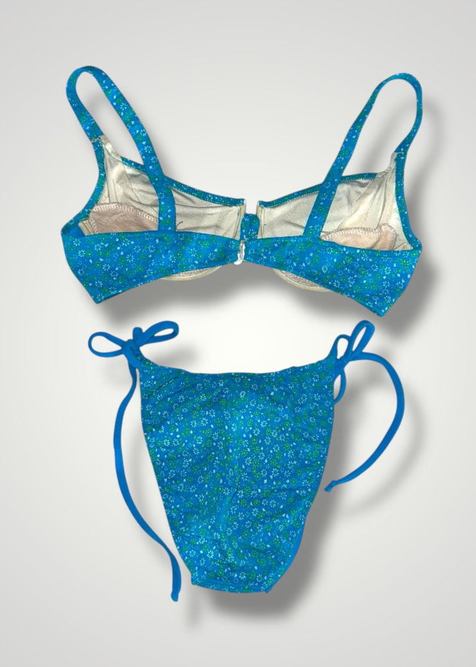 90's Tie-Side U-Wire Ditsy Blue Floral Retro Swimsuit Set | Deadstock USA-Made Vintage