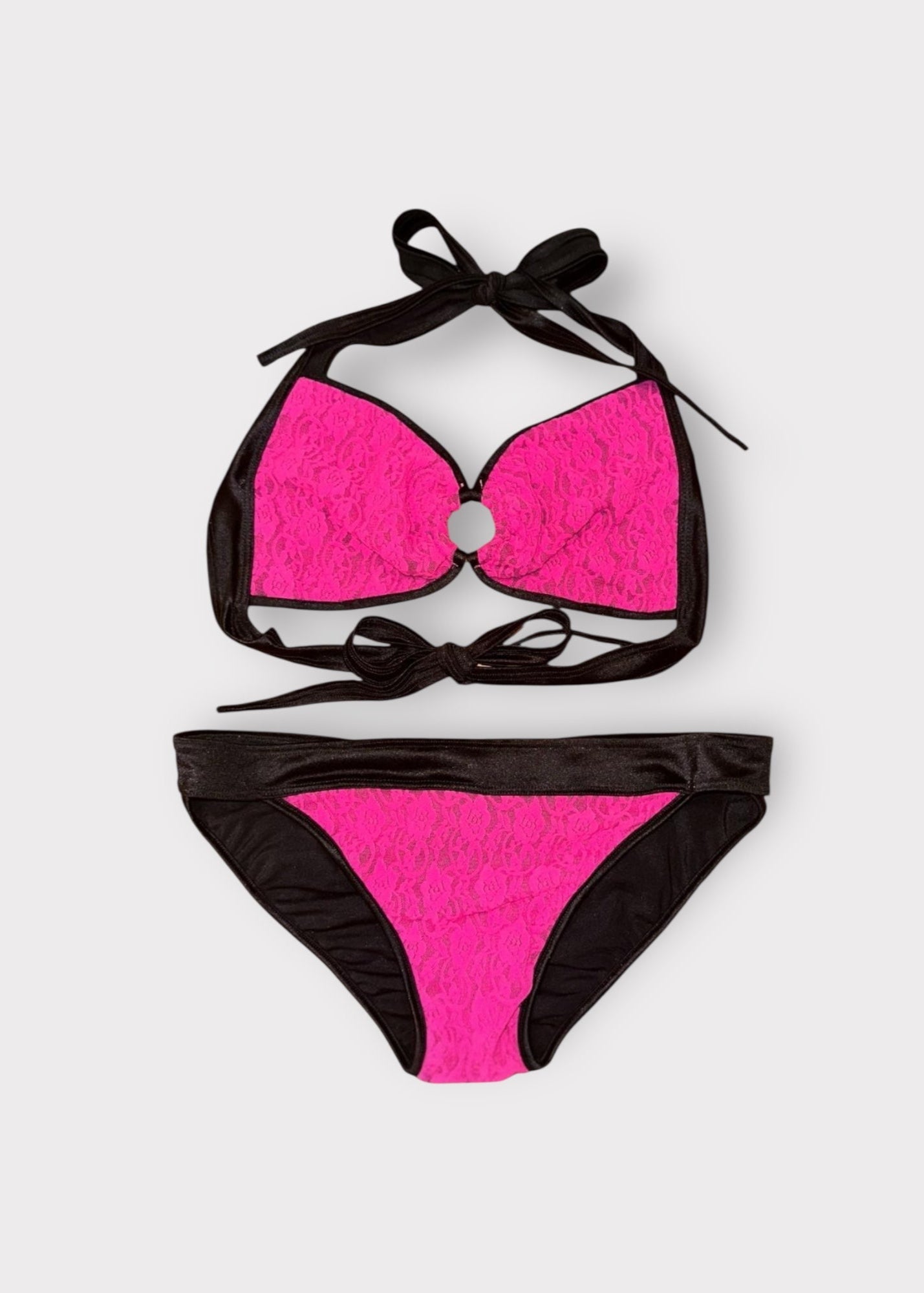 Y2K Scrunch Butt Lace Bikini Set – Hot Pink USA Vintage (M)