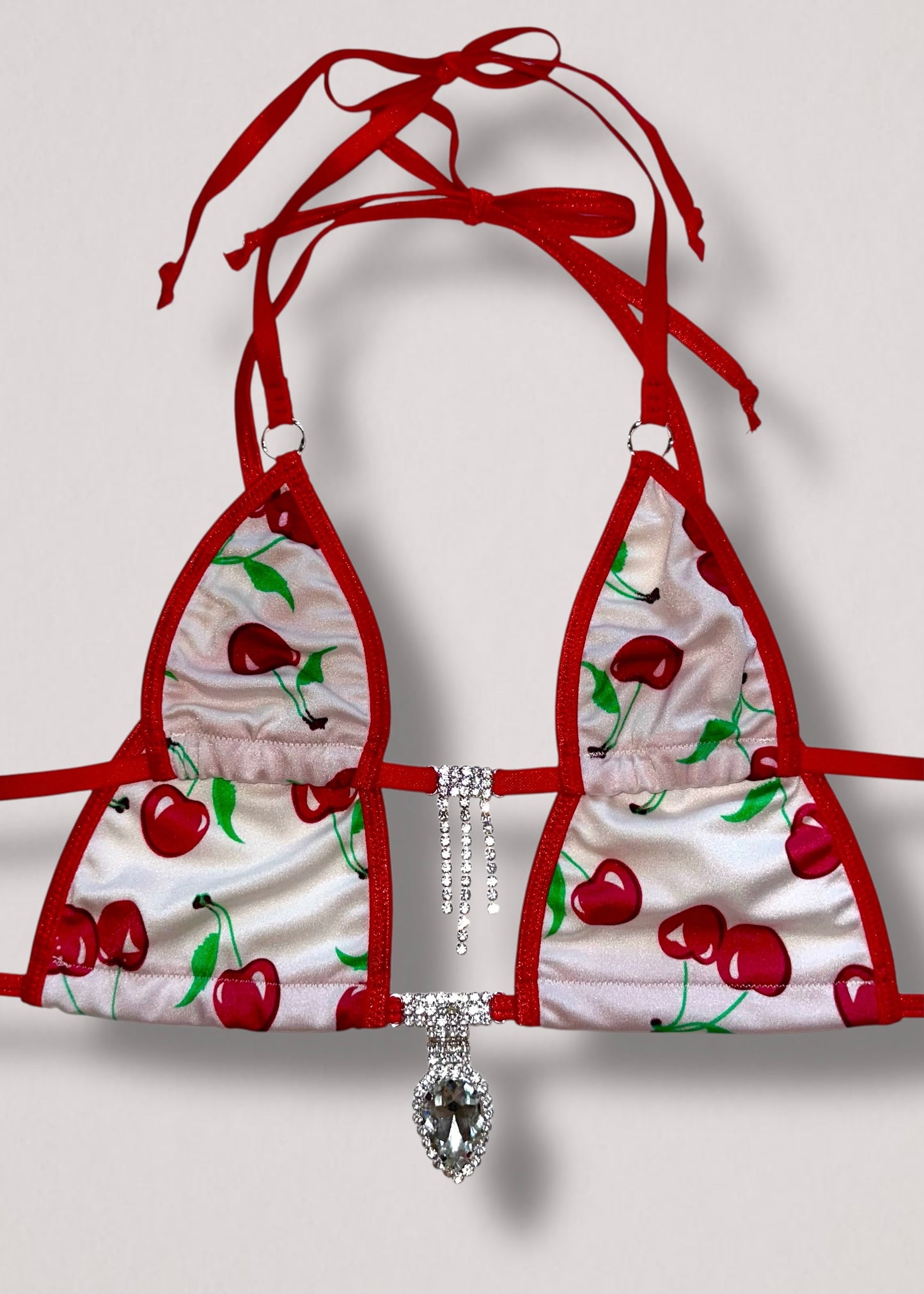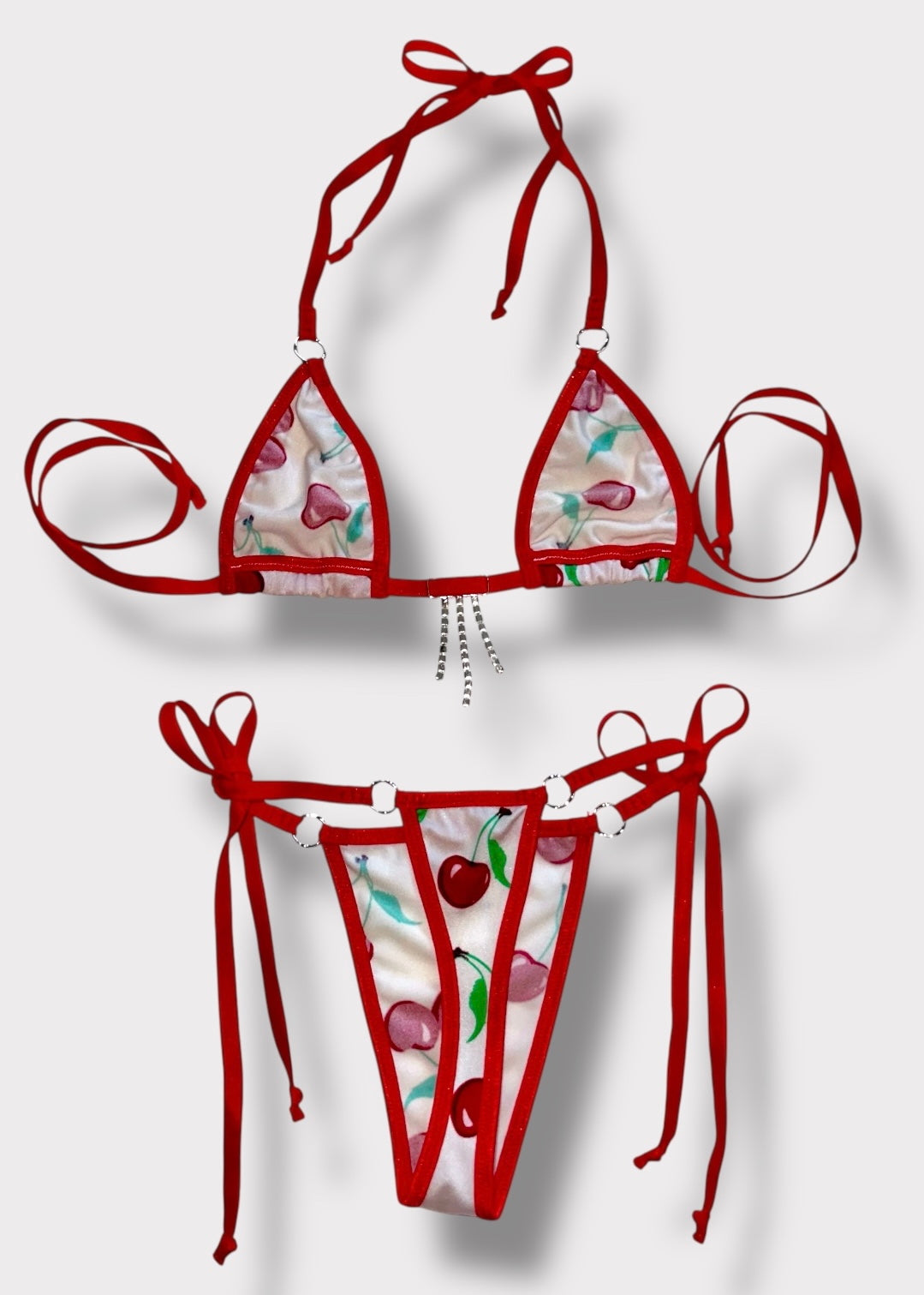 Y2K Cherry Diamanté Micro Bikini Set White/Red – Handmade USA (XS/S)