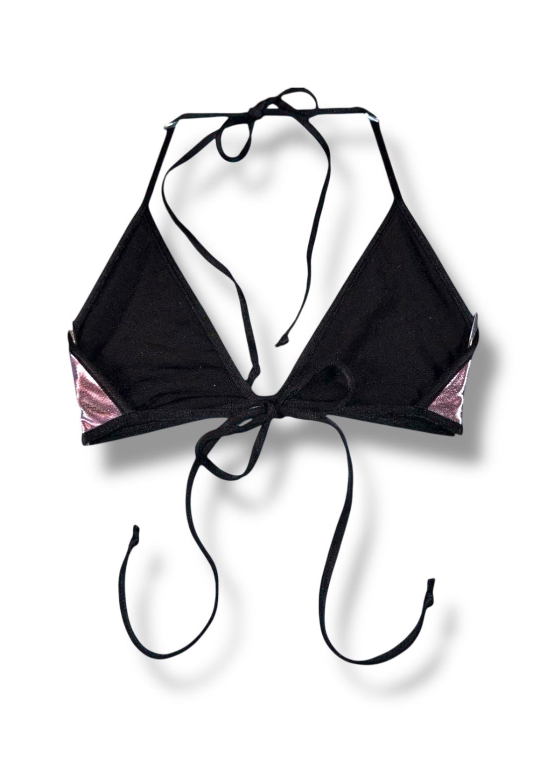 Y2K Skimpy Halter Fixed-Triangle Bikini Top | Metallic Ringer | Denali Brand