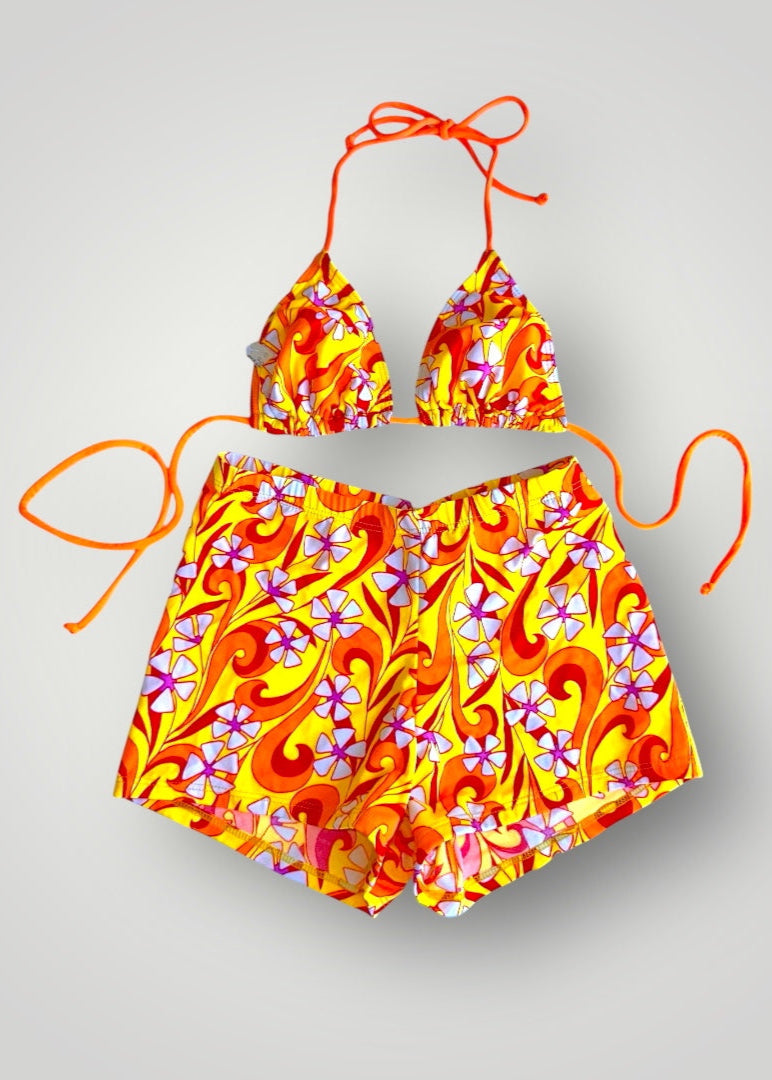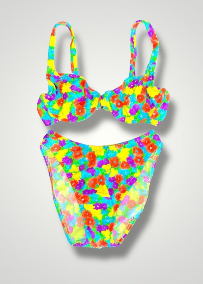 Shop rare vintage bikini sets and one-piece swimsuits at Denali Brand — featuring authentic deadstock 1990s and 2000s swimwear made in the USA. Each piece is crafted with premium, figure-flattering fabrics, vibrant retro prints, and ultra-feminine silhouettes. Discover underwire bikini tops, scrunch strap bottoms, high-cut legs, and curve-hugging one-pieces in limited quantities.
